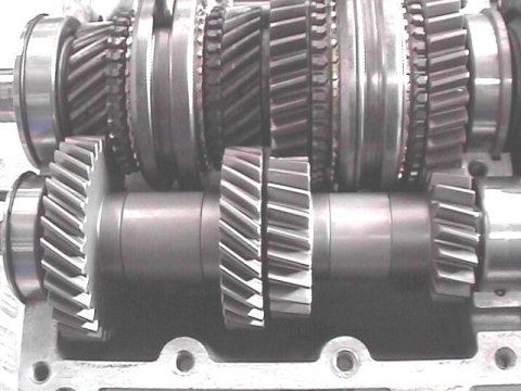 左のカウンターギアと3速に比べて、2速と1速はギアの切り方が