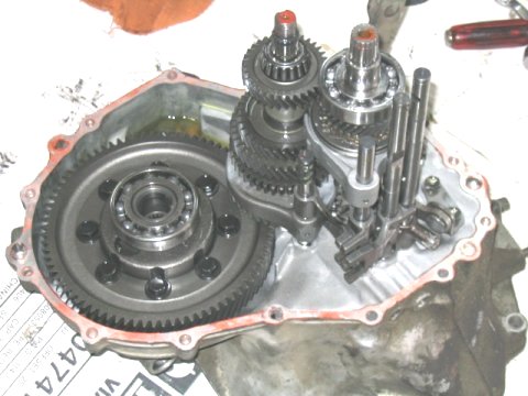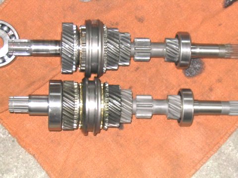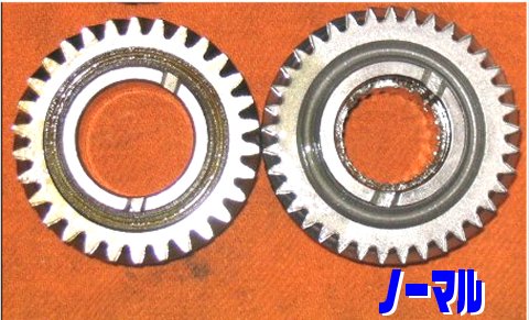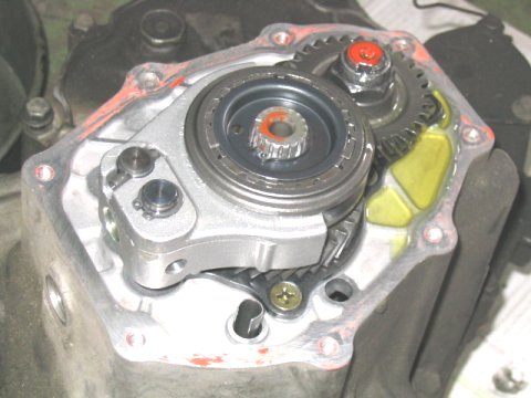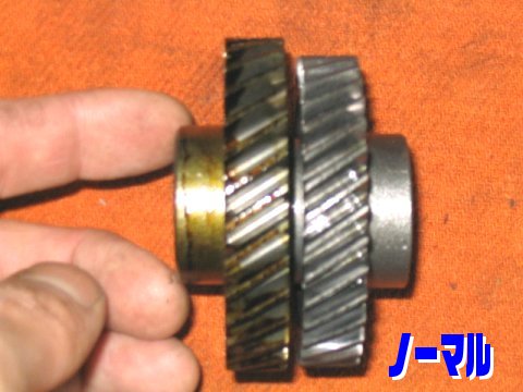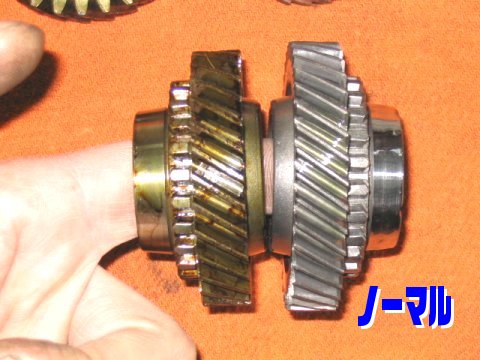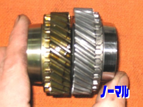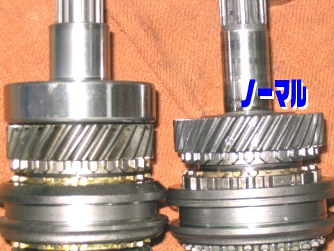 手前のほうがインプットシャフト側で、奥側の赤いペイントが