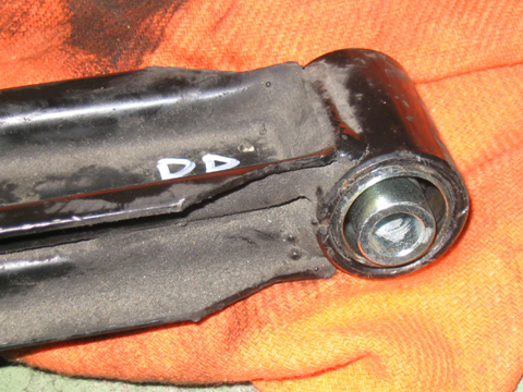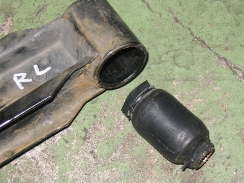 純正のブッシュは両端のゴム部分がアームにかぶさっています。