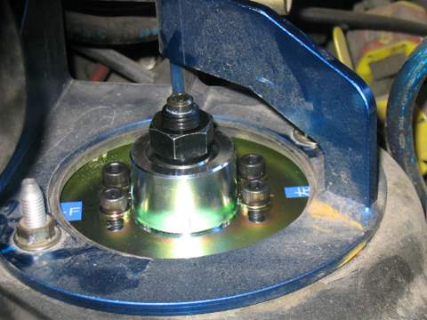 プレスを使ってノーマルのゴムブッシュを抜き取ります。