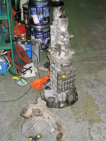 車から降りたミッションとデフです。