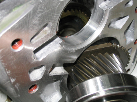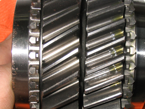 ギアの奥に見えるハブスリーブがかみ合う部分が