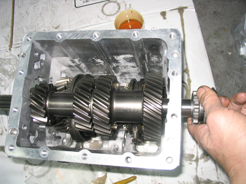 一番左側のギアは純正のインプットシャフトとかみ合う