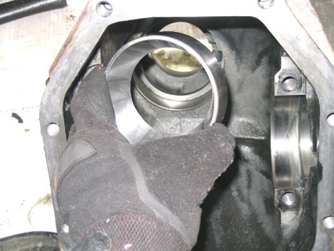 OSのデフに新品のリングギアと、こちらも新品のサイドベアリングをセットします。