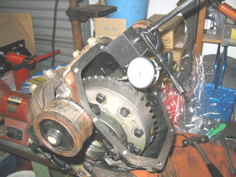 デフ本体をキャリアに組み付けて、バックラッシュの調整。