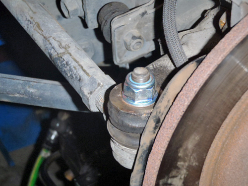 ・ナットを頑丈にしてタイロッドエンドのテーパーをナックルに強くはめこむ。