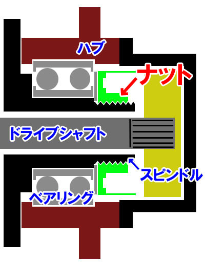 正確には「ハブベアリングをスピンドルに固定」という構造になりますね。