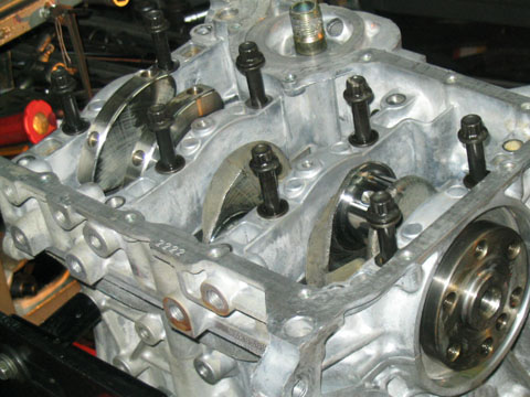 ヘッドが載っかるとだいぶエンジンらしくなってきます。