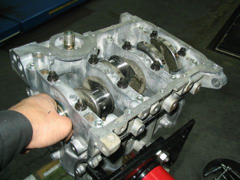 ヘッドにバルブリフターをはめ込んでカムを載せます。