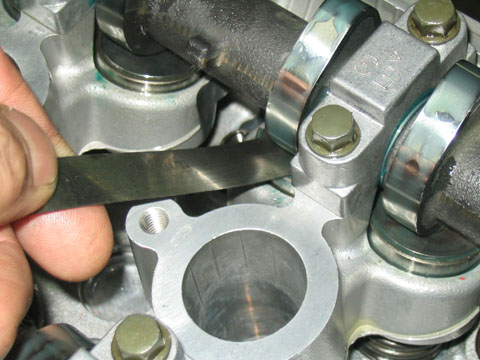 シクネスゲージでカムとバルブリフターのすき間を測り