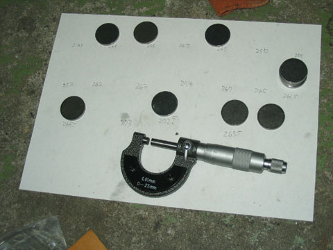 取り外したシムの厚みを測って、ちょうどいいクリアランスに