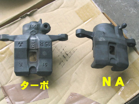 フロントと違ってリアはNA車でもハブとローターは別体式です。