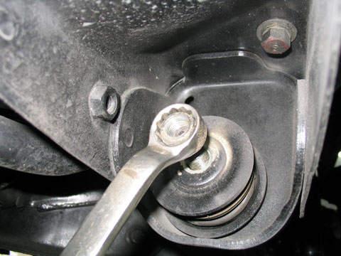 テンションロッドをブッシュから抜き取ります。