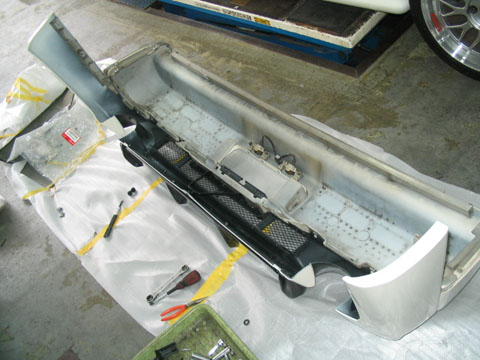 NSX 02Rリアスカート装着装着作業の紹介です。
