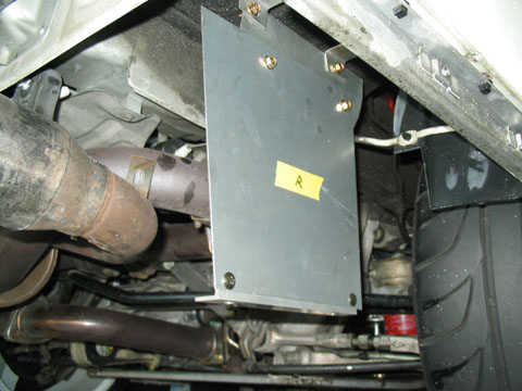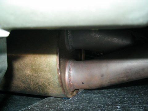 ソーサリーのマフラーはプレートの下部分に出口がくる構造なので