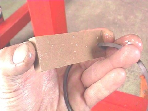 オイルストーンでリングの端を削って合わせます。