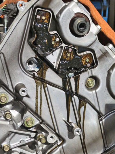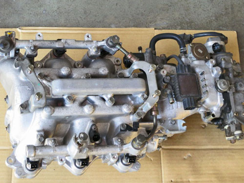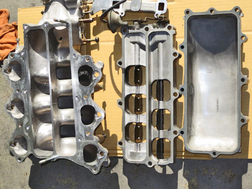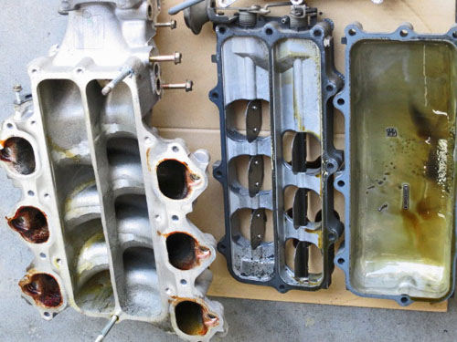 インマニも分解します。内部はかなりオイルがベッタリですね〜。