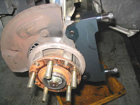 キャリパーをオフセットさせるためのブラケットを装着するには