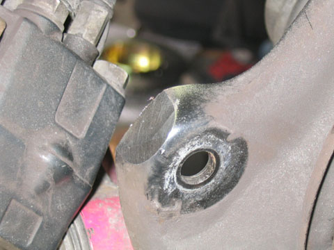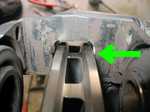 先ほどの加工は外側のボルト(キャリパー固定用)の