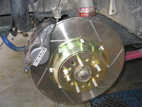 レガシィWに4POTキャリパーを装着した作業の紹介です。