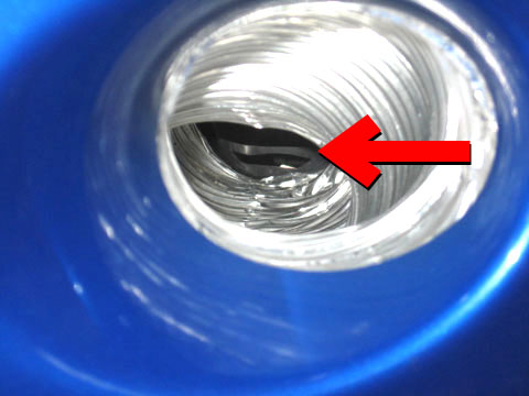 穴の奥にチラッと見えるアルミダクトが