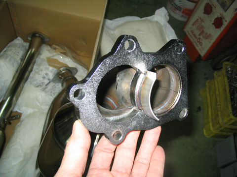 純正ではリリーフ側はフランジの鉄板で塞がれていて、排気が