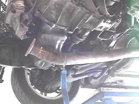 フロントパイプもタービン側を外してフリーにします。